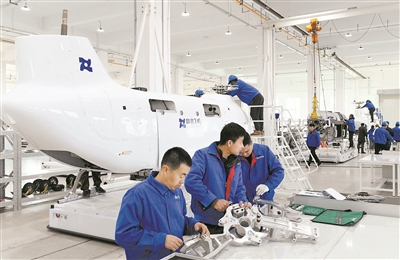 工人检查无人机零部件。 ■本报记者 梁可心文/摄