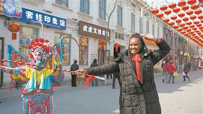 南非留学生与京剧演员互动。本报记者 纪天伟摄 本报讯(记者 于秋莹)3月20日10时,“尔滨”春天更有戏——“国风雅韵 中西和鸣”音乐展演在中华巴洛克历史文化街区老道外大戏台启幕。本次活动由哈尔滨日报社主办,中共道外区委宣传部、道外区文化体育和旅游局支持。活动以传统民俗节日“二月二、龙抬头”为切入点,深度融合国风文化、非遗技艺、中西文化与城市文旅资源,以一场实景化、互动式的文化盛宴,为春日冰城再添亮色。
