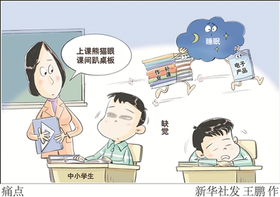 “上课熊猫眼,课间趴桌板”,不少中小学教师坦言,很多学生因为缺觉,上课无精打采,课间趴在桌上睡觉。