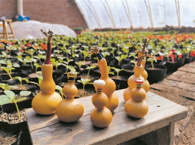 文玩葫芦。 本报讯(张加勋 记者 刘姝媛文/摄)在道里区太平镇太安村,一片温室大棚在初春的阳光下格外显眼。棚内,10余个品种的葫芦苗正焕发着勃勃生机,每垄苗前清晰的红底白字标牌,记录着孙彬的8年坚守与从“玩家”到“匠人”的转变历程。如今,小小的文玩葫芦,已成为当地特色农业的一张新名片,正带动周边村民共同奔向致富路。