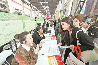 本报记者 刘洋摄 本报讯(记者 尹明)3月28日下午,由黑龙江省总工会、哈尔滨市总工会主办的2026年“工会就业服务”招聘活动在哈尔滨市西城红场艺术长廊举行。活动现场人头攒动,气氛热烈,来自全省各地的求职者与用人单位精准对接,共赴一场春日的就业之约。
