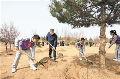 在京中共中央政治局委员、中央书记处书记、国务委员等参加植树活动。