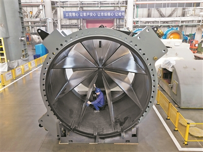 哈电集团研制的3.5米直径世界最大水电泄压阀。王学善 本报记者 刘洋摄 ■本报记者 徐光胜 张鸣霄 节永志