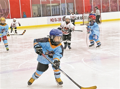 小球员在比赛中。 本报讯(记者 那跃娜文/摄)4月4日,2026上合组织冰雪体育示范区·国际体育文化交流年·中俄体育文化系列活动暨2026年第二届“精英杯”中俄青少年冰球、花样滑冰城市交流赛正式开赛。本次赛事作为2026上合组织冰雪体育示范区国际体育文化交流年的开篇之作,以青少年冰雪运动为纽带,奏响中俄体育文化交流序曲,为冰城全年国际体育文化交流活动拉开精彩帷幕。