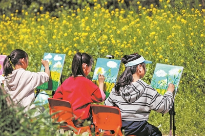 4月4日,在河南省焦作市博爱县人民公园,小朋友在写生。新华社发 在热气球上俯瞰金色花海、去博物馆感受千年文脉、在主题乐园里享受亲子时光……伴随多地中小学春假开启,旅游市场迎来一轮新热潮。