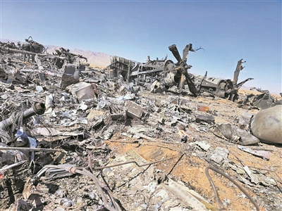 这张4月5日发布的社交媒体图片显示,伊朗伊斯法罕一处地点散落有疑似美军飞机残骸。新华社发 据新华社电 美国空军一架F-15E型“打击鹰”双座战斗机3日在伊朗伊斯法罕省上空被击落,机上两名人员弹射逃生,其中一人很快获救,另一人两天后才获救。路透社5日以知情美国官员为消息源报道,美军针对后者发起的营救行动出现“突发状况”,险遭“灾难性”人员损失。