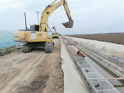 灌渠施工现场。 ■本报记者 罗彦坤文/摄