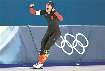 宁忠岩打破奥运纪录,获得速度滑冰男子1500米金牌。 ■本报记者 张堃雷