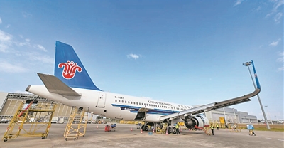 1月29日,海口美兰国际机场停机坪上,南航工程技术分公司机务工程师在对飞机进行深度检查。新华社发 民航安全无小事,法治之力护平安。