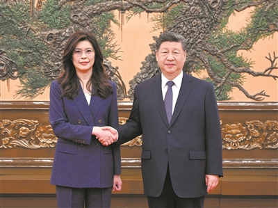 4月10日上午,中共中央总书记习近平在北京会见郑丽文主席率领的中国国民党访问团。 新华社记者 谢环驰摄 新华社北京4月10日电 中共中央总书记习近平10日上午在北京会见了郑丽文主席率领的中国国民党访问团。