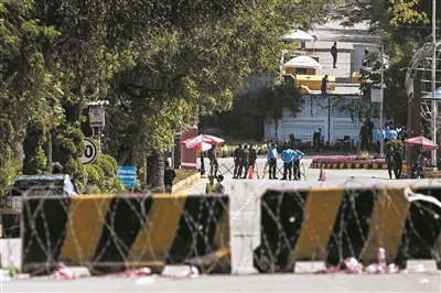 4月10日,在巴基斯坦伊斯兰堡,安全人员在美伊会谈的预期地点附近警戒。