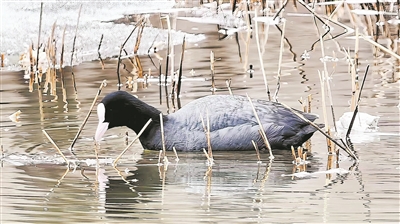 白骨顶鸡正是“常住居民”的代表。近年来,它的身影频繁出现在哈尔滨市区内各大公园的湖面上。丁香公园工作人员告诉记者,这片水域,经常能见到白骨顶鸡、鸳鸯、绿头鸭一起在波平如镜的湖面游弋觅食。这些都是野生鸟类在哈尔滨城区水域适应性定居的有力证明。