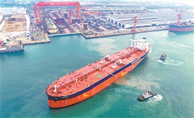 31.9万吨氨预留超大型原油船在青岛启航。新华社发 央视网消息 今年以来,我国船舶海工产业发展势头强劲,高端装备接连交付,世界级船舶海工产业集群正加速形成。