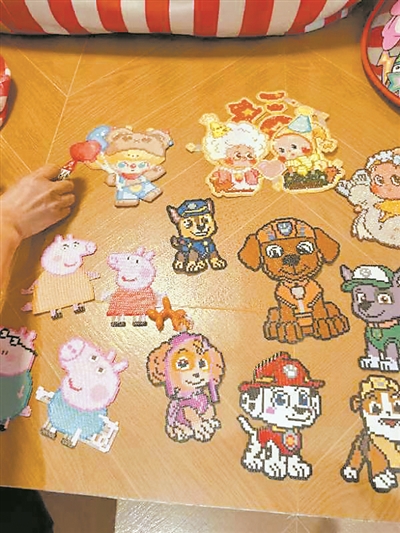 形态各异的拼豆作品。 ■本报记者 王冠文/摄