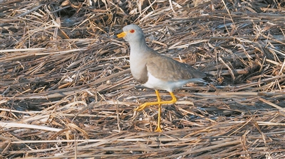 灰头麦鸡现身松花江畔。 “哈报手机记者” 吴戟摄 本报讯(记者 王铁军)“快看!这鸟长得真特别,像灰鸽子,可腿又细又长,红眼睛、黄嘴黄脚,太漂亮了!”近日,有市民在太阳岛外滩湿地意外发现几只模样俊俏的水鸟,它们步态优雅、羽毛鲜亮,引人驻足拍照。经东北林业大学野生动物与自然保护地学院专家确认,“高颜值”来客正是国家“三有”保护动物——灰头麦鸡。