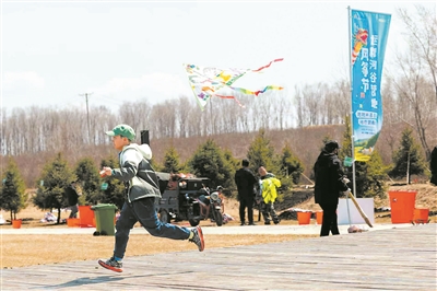 风筝节现场。 本报讯(记者 李佳琪 那跃娜)4月18日,龙江交投运粮河谷营地首届风筝节在京哈高速运粮河服务区(哈尔滨方向)后侧开幕,活动为期两天。