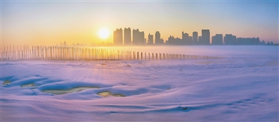 中央大街被雪覆盖,门楼底下的花坛,顽强地透出些许红色。太阳岛上,细雪如柳絮般飘落,广场早已热闹起来。车身上的雪花,多得难以分辨。
