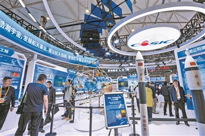 4月24日,参会嘉宾在航天科普展览上观展。新华社发 ■新华社记者 李倩薇 宋晨 李力可