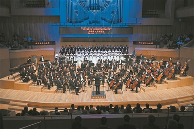 交响乐《文明颂》演出现场。 哈尔滨音乐厅供图 本报讯(记者 于秋莹)日前,国家艺术基金2026年大型舞台剧和作品创作资助项目——交响曲《文明颂》在哈尔滨音乐厅恢宏奏响。本场演出由著名作曲家、指挥家王宁执棒,拥有百年历史的哈尔滨交响乐团倾情演奏,哈尔滨歌剧院合唱团助力合唱,85名演奏家与60名合唱团成员组成145人的庞大阵容,演绎文明交融的时代华章。