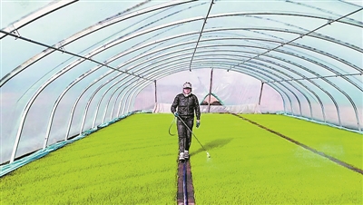车丽新为秧苗浇水。尚鹏程摄 本报讯(董芮菡 李楠楠 记者 王东)初春时节,尚志市老街基乡龙王庙村的黑土地上涌动着春耕的身影,孕育着丰收的希望。村民们抢抓农时、播种育苗,用勤劳的双手开启新一年的农耕生活。