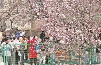 图为人们在校园里欣赏杏花。 本报讯(记者 刘洋文/摄)4月26日,哈尔滨工程大学第二届杏花节开放周启幕。以花为媒、以文化人,将春日盛景与军工精神、科技创新、非遗传承深度融合,打造集赏花、研学、体验、交流于一体的校园文化盛宴。活动将持续至5月5日。