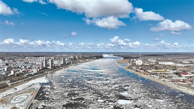 近日,中俄界江黑龙江黑河段进入春季流冰期。大量冰排浩荡而下,景象壮观。新华社发