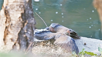 在马家沟河畔活动的珠颈斑鸠。“哈报手机记者” 吴戟摄 本报讯(记者 王铁军)近日,有摄影爱好者在哈尔滨马家沟河畔拍到成对活动的珠颈斑鸠,成为城市春日里新鲜的生态观测看点。这种外形酷似野鸽子、颈部自带珍珠般斑点花纹的鸟类,20年前在整个东北地区几乎没有分布,随着活动范围不断北移,近些年才陆续现身龙江大地。
